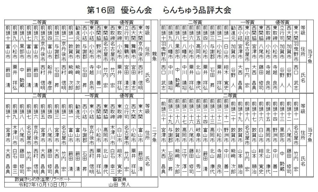 第16回 優らん会 らんちゅう品評大会