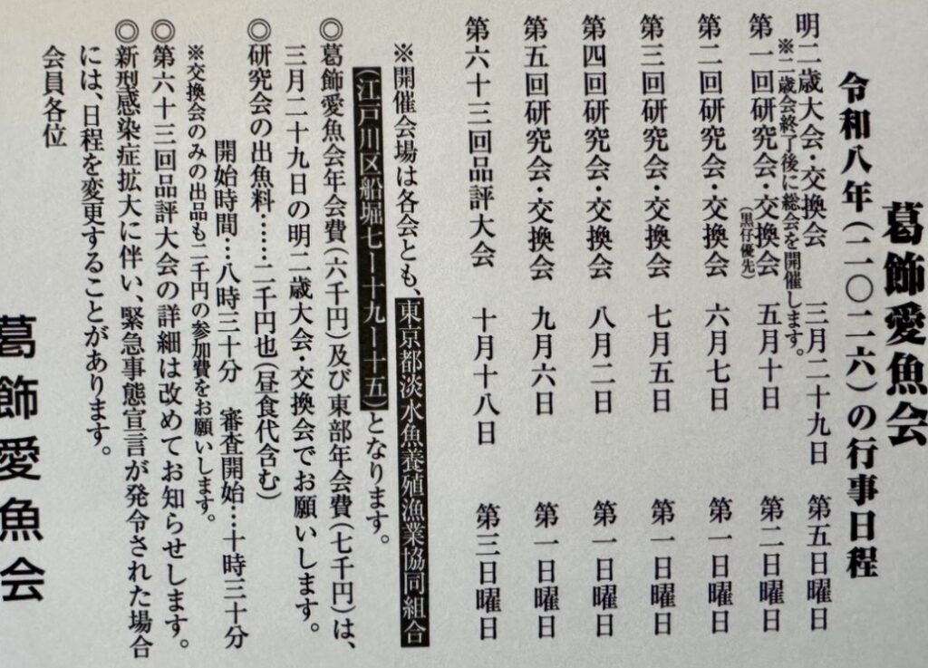 【葛飾愛魚会】令和八年度行事予定 日本らんちう協会 東部本部